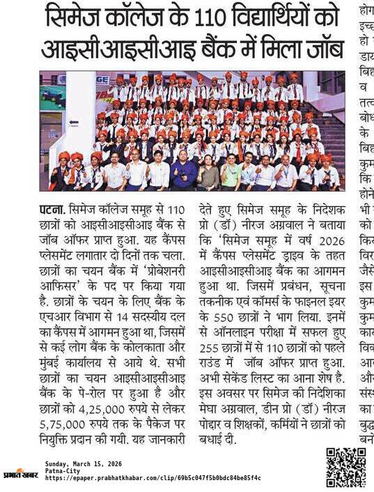 The selection of 110 students in ICICI Bank is not just a CIMAGE milestone — it is a benchmark moment for higher education in Patna and Bihar. It proves that with the right academic foundation, industry exposure, and mentorship, students from Bihar can compete and win at par with candidates from metropolitan cities.