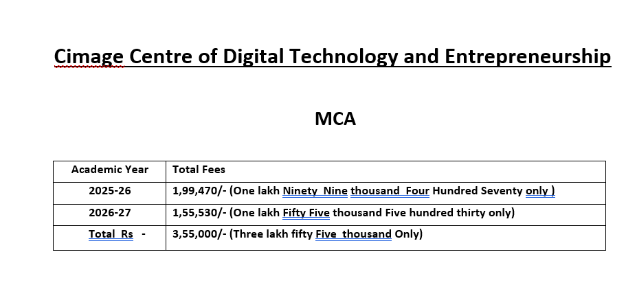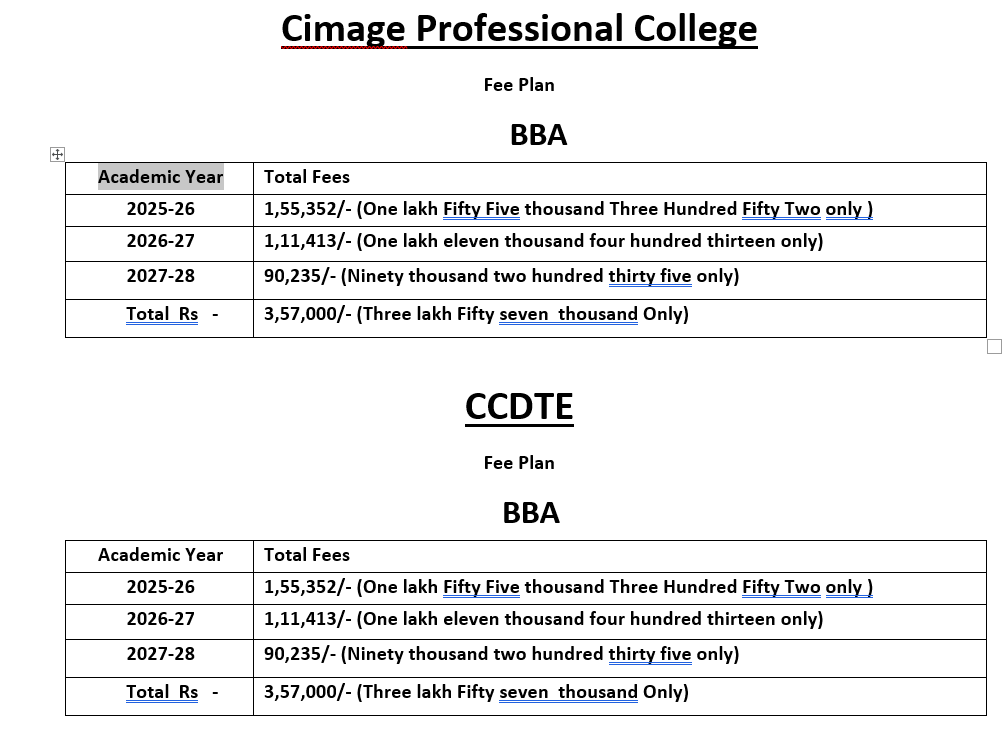 CIMAGE Fee Structure for 2025-2028