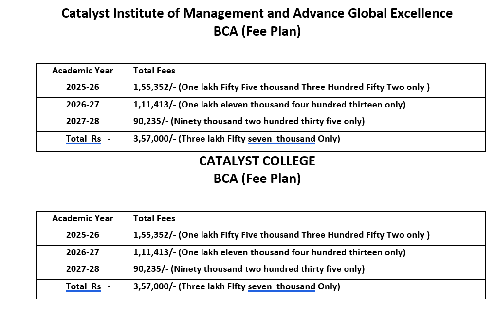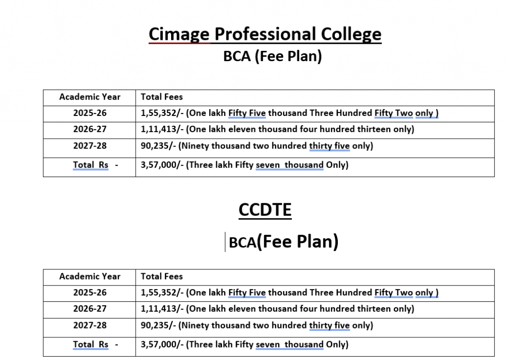 Combined Fee of all courses for BCA & Add on Certificate courses