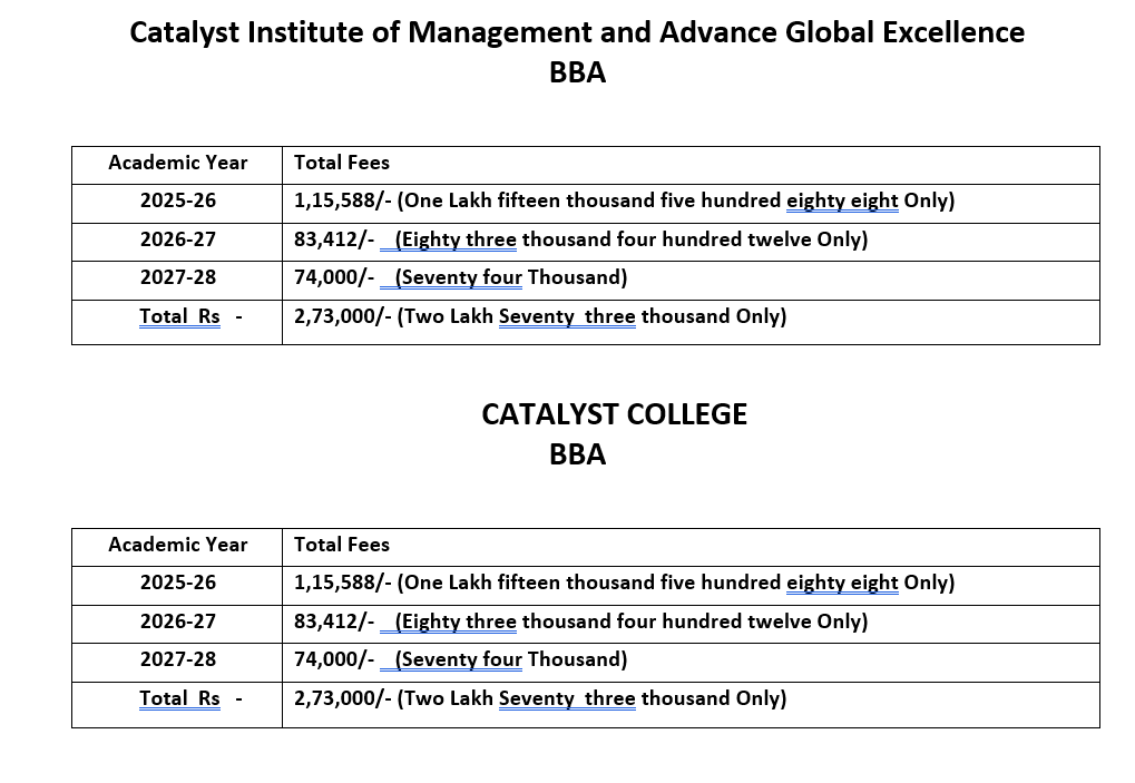 Combined Fee of all courses for BBA & Add on Certificate courses
