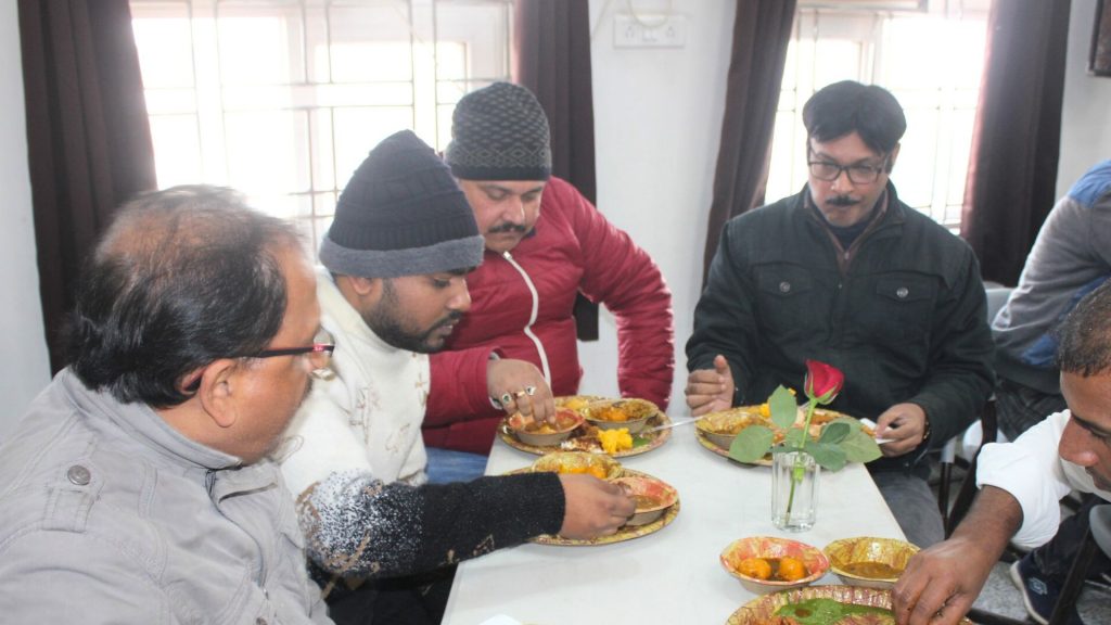 The shared festive meal became a moment of bonding and celebration, fostering warmth and togetherness among participants.