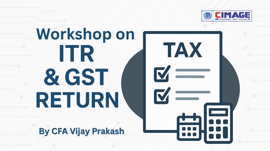 In today’s fast-changing professional world, earning money is only one part of success—managing it wisely is equally important. Financial literacy has become an essential life skill for students, helping them make informed decisions about income, taxes, savings, and future planning. Recognizing this need, CIMAGE Group of Institutions emphasizes practical financial education through structured learning initiatives such as the Income Tax Return (ITR) and GST Filing Workshop.