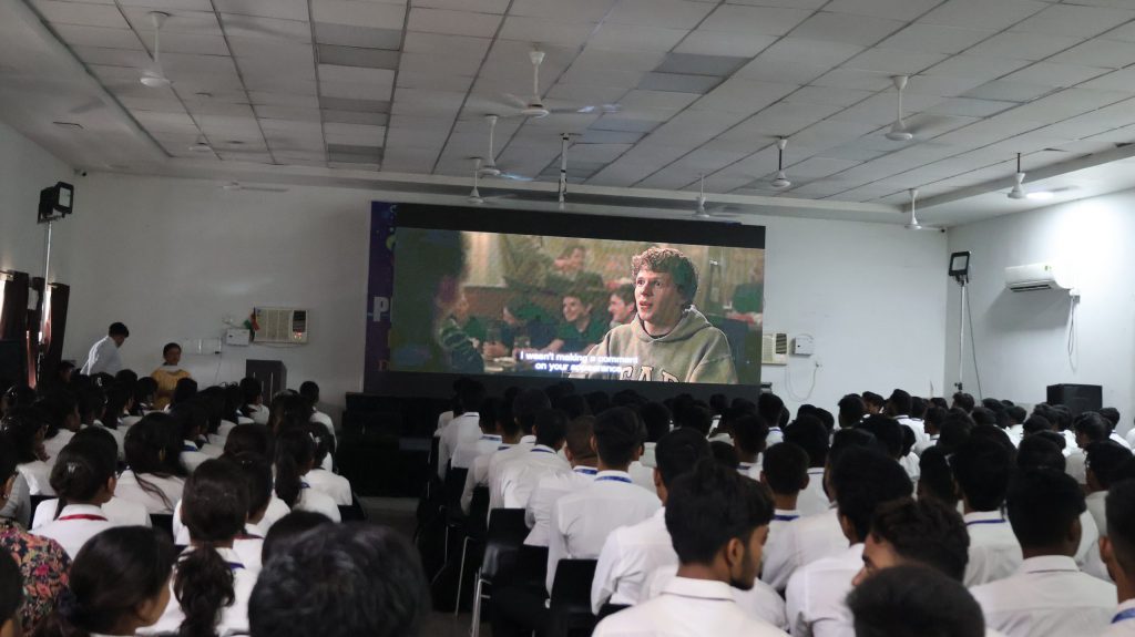 Films like The Founder, The Social Network, and Steve Jobs are screened to help students understand real-life entrepreneurial journeys, decision-making, and innovation. These movies serve as case studies, helping students analyze success stories, challenges, and leadership traits of global achievers.
