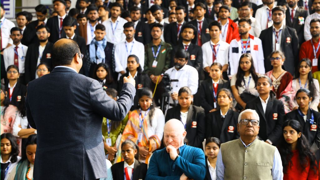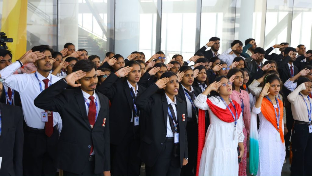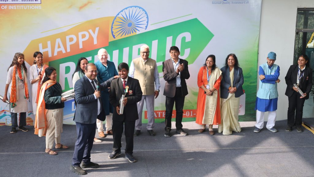 Following the flag hoisting, Director Dr. Prof. Neeraj Agrawal delivered an inspiring address to the students and faculty. In his message, he highlighted the significance of the Indian Constitution and emphasized values such as integrity, discipline, unity, and social responsibility.